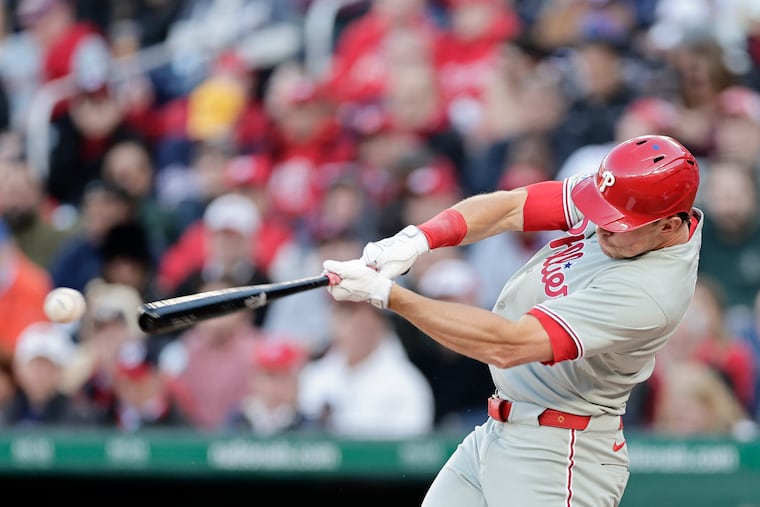 Realmuto struck out in his first four at-bats Thursday, then crushed a two-run triple in the 10th inning — the sort of hit you love to let linger with an off day in the offing. The series resumes in Washington Saturday evening.