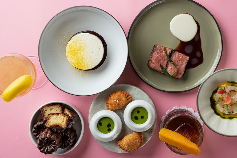 A member of my top 10 restaurants of 2021, Chad and Hanna Williams were forced to embrace a tasting menu when they reopened after the pandemic-induced shutdown, and Chad has benefited from the next-level focus of creating tastings that tell a story. As I took opening sips of deep purple chicha morada then nibbled through one spectacular bite after the other — truffled sweetbreads over caramelized plantains, ethereal beet cappelletti, marrow-glossed Wagyu steak, and bay leaf semifreddo over rhubarb and crunchy meringue — the story unfolding here is one of a complete restaurant whose close-knit creative team is humming in synchronicity. With one of the city’s best soundtracks lending the meal an old soul groove, this eight-course feast featured contributions from the entire kitchen. Chad’s love of tangy buttermilk was showcased in the whey-creamed dashi that swirled around halibut dusted with local bay. Tiny empanadas stuffed with crispy pig face were a fabulous collaboration between chef de cuisine Sashia Liriano and pastry chef Amanda Rafalski, with a sorrel dip from line cook (and hot sauce queen) India Rodriguez. Liriano’s BBQ veal cheek, meanwhile, whose smoked pepper-black plum sauce was inspired by FSS’s pandemic barbecue pop-up, was the most memorable of all. Its tender meat came wrapped inside a leaf of grilled chard beside a crispy mille-feuille of shaved yam that, when pressed, fanned out into a silky puree of more yam. I wanted more. I did with every plate. Ultimately, each dish was a perfect chapter in a most-compelling meal.