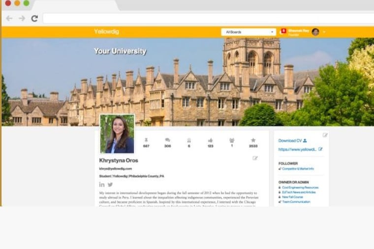 Yellowdig develops a "sense of community in online students" similar to that cultivated by traditional colleges, Lodish said in a statement.