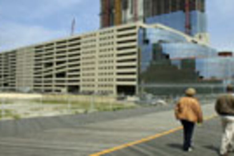 ATLANTIC CITY - Workers are completing a 13-story parking garage on the northern end of the Boardwalk that will house up to 7,800 cars for the $2.5 billion Revel mega-casino when it is completed - whenever that may be.