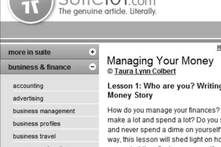 Course 101. The free online course site suite101.com has a four-lesson series on money management. Its author, Taura Lynn Colbert, introduces herself in a compelling way by describing her personal history of bad money habits, including moves that led to the repossession of her car just before Christmas and a personal bankruptcy filing just after New Year's. She calls the course "Improving Your Financial Self-Esteem." You start by writing your own "money story," Colbert says.