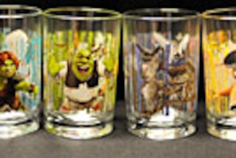 The Shrek Forever After glasses, made in South Jersey by a French manufacturer, were sold for $1.99 or $2.49 at McDonald's in May and early June. To encourage their return after CPSC tests showed risk of cadmium exposure, the chain offered to buy them back for $3 apiece.
