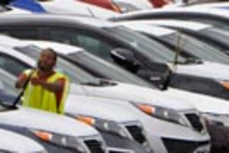 A shiny Hyundai Elantra rolled off a ship resembling a floating parking garage at 8:01 a.m. Tuesday, and Philadelphia longshoreman Brian Edmunds drove the first car off to a nearby auto-finishing lot.