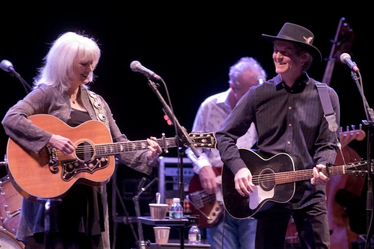 The silver-haired, 65-year-old Harris is an iconic figure in cool country-rock, revered mostly for pairing her angelic voice in harmony with a long list of scruffier male singers, from Parsons to Bob Dylan to Bright Eyes. She's always been a formidable bandleader, however, bringing Crowell into her 1970s Hot Band, which also featured Ricky Skaggs.