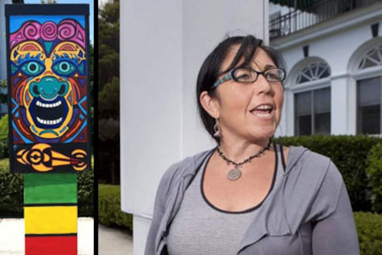 VENTNOR, N.J. — It took Elyssa Glenn a week to transform the dull gray utility box that controls the lights at Atlantic and Dorset Avenues into a brilliantly colored totem pole designed to protect this Shore town from violent storms.