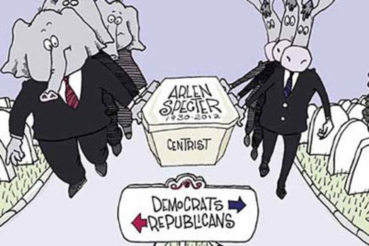 He also spoke of his membership in the Wednesday Lunch Club, a regular gathering of two dozen Republican Senate moderates in the 1980s. Specter then lamented, "Moderates today can meet in a phone booth."