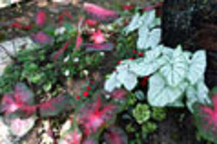 True, caladiums can't tolerate a chill in the air, let alone frost. But they'll thrive here all summer long.