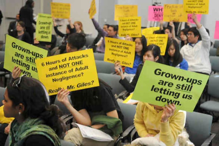 Seven students were sent to hospitals after the daylong attacks in and around the school on Dec. 3. Rumors of an altercation between Asian and African-American students from the previous day sparked reprisals, according to the probe's report.