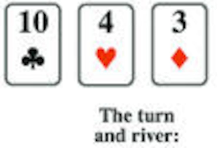 The flop came 10-4-3, rainbow, giving Voertmann a set of 10s. The limper checked. Voertmann made a continuation bet of $600.