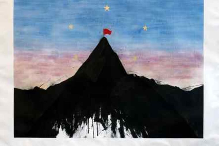 After seeing the works in the Bossone Center and the Paul Peck Alumni Center, walk a block west and across Market Street to the university's Leonard Pearlstein Gallery, which has the fewest works of the exhibition's three venues, but a memorably quirky and melancholy ink-painting animation by Qui Anxiong.