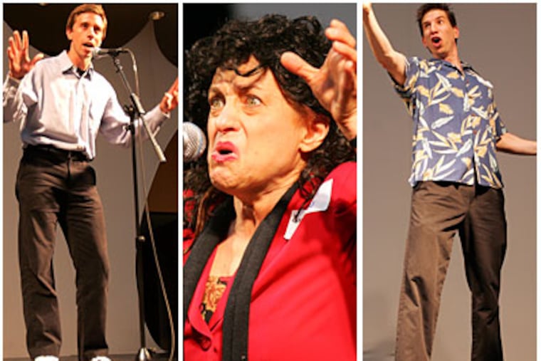 Actresses Sharon Geller, from Philadelphia, and Antoinette Elias, from Easton, each earned a 14 out of 15 for their bits - Geller for her rendition of Elaine's stuck-on-the-subway lunacy and Elias for the token female character's tear-filled recap of a manic drive to the airport.
