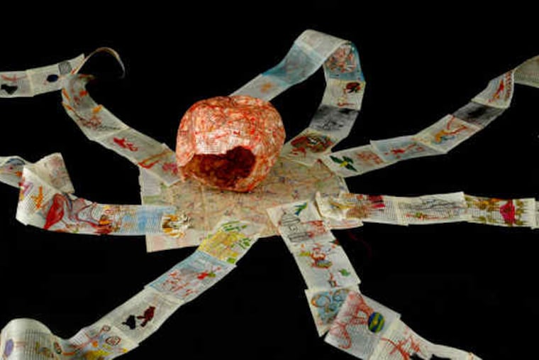 Under the big top Artists Beth Uzwiak and Elysa Voshell collaborated on the multimedia installation Nights at the Circus, using altered book pages, large screen prints, and sculptures made of stitched maps and drawings to create the characters in their troupe. The exhibit is at the University City Arts League, 4226 Spruce St., to July 3. Admission is free. Call 215-382-7811.