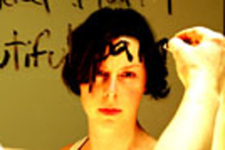 4.48 Psychosis. Sarah Kane's austere, deeply disturbing play is about suicide - probably her own, at 28, in 1999; the play was first produced posthumously in London. This dark production, by Little Green Pig Theatrical Concern of Durham, N.C., is perfectly suited to its venue, the beautiful old chapel of the Fleisher Art Memorial. The darkness of both the sanctuary and the material was made moreso by the contrast with the brilliantly sunny, blue-skied day outside.