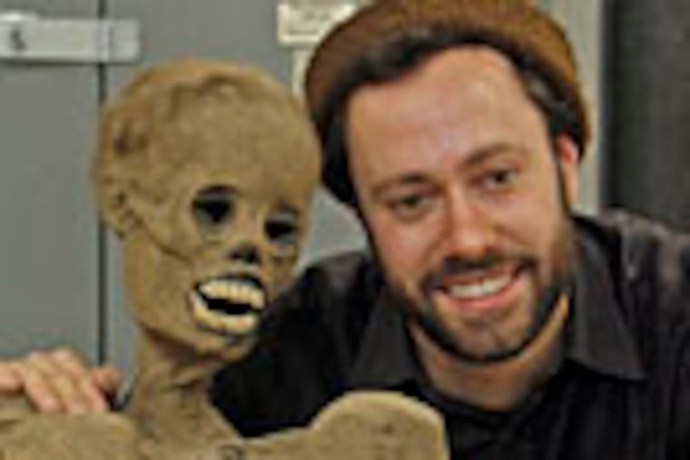 Neiditz displayed his initial mummy - the unnamed sneaker dude - in late 2008 at a group art exhibition at the Padlock Gallery in South Philly. He says he created it as a lark, to add humor to the show.