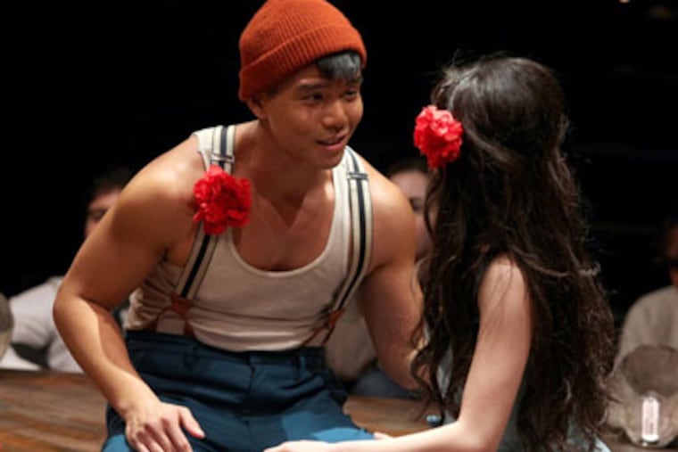 The staging often comes rolling in from left field -- votive-size cups of wine for the audience at intermission, disciplies on trampolines. Some of the songs, set into snappy production numbers, carry revival-meeting zest. (Well, it is a revival.) And Anna Maria Perez de Tagle, who sings "Day by Day," shows just why the song was an international chart hit. I can argue over the potential of Godspell to be a piece of compelling theater, in any setting. But I can't take issue with this particular staging, so richly realized.