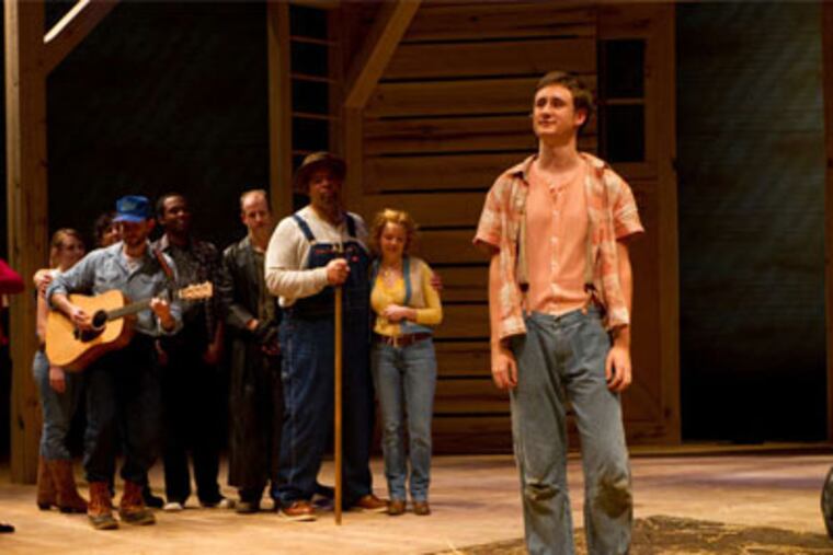 Many parents will recall the story's 1973 animated version, with Paul Lynde as Templeton the rat, singing about the state fair's veritable smorgasbord-orgasbord-orgasbord. While Joseph Robinette's adaptation leaves room for music, it's of a subtler sort. As designed by Christopher Colucci, the cast members stroll the set under David P. Gordon's wooden barn frame, strumming and humming some bluegrass (Charlie DelMarcelle on guitar and harmonica) or piping a few magical notes on a flute (Sarah Gliko's Charlotte). Drew Billiau's lighting is all bright summer days, and proving this is a show that celebrates all the sensory experiences central to young (and old) life, director Whit MacLaughlin sends his cast out into the house, waving fans doused in lavender oil.
