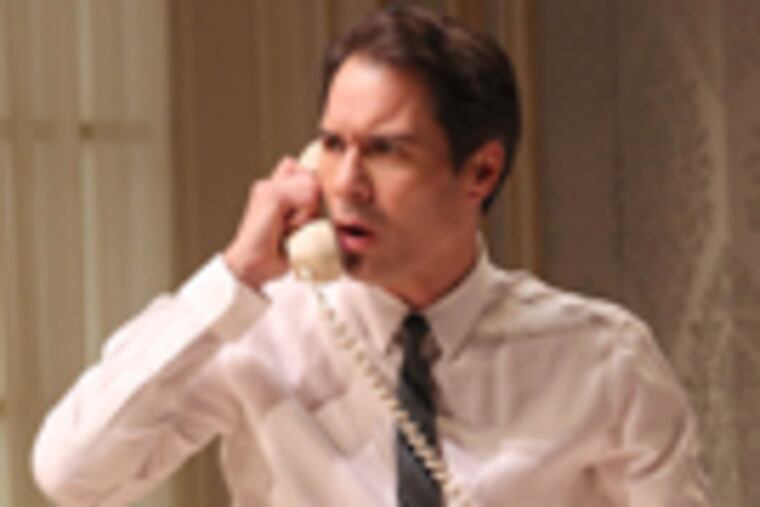 NEW YORK - I was on Broadway when I suddenly walked right into Center City Philadelphia. It was weird - a big banner on the stage of the Gerald Schoenfeld Theatre announced "PHILADELPHIA WELCOMES DELEGATES" and other signs told us we were at a 1960 presidential nominating convention. When the show started, Derek McLane's nifty set with rotating walls spun out to reveal a room in the Bellevue Stratford Hotel, which looked like the real thing from five decades back, down to the moldings.