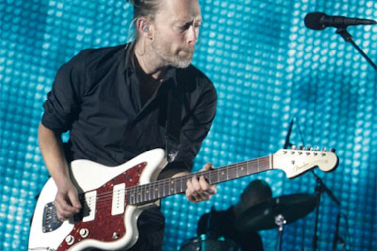 There's a not a band in the world better at projecting postmillennial unease on a grand scale than Radiohead, the six-man art-rock outfit from Oxford, England, that spent a lovely late-spring evening in Camden on Wednesday making beautifully jittery music.All century long, ever since the career-redefining Kid A in 2000, Radiohead has been turning inward, relying on fractured polyrhythms, ambient textures, and Thom Yorke's elegantly alienated vocals to convey a sense of sublime digital-age anxiety. At the Susquehanna Bank Center on the final night of a U.S. tour that began in February, Radiohead played a terrific 23-song set. It began with the glitchy typewriter-tapping groove of "Bloom" and ended just over two hours later with the enveloping "Everything in Its Right Place" — which, for Radiohead, means everything is in a constant state of flux — fractured into electronic clutter.