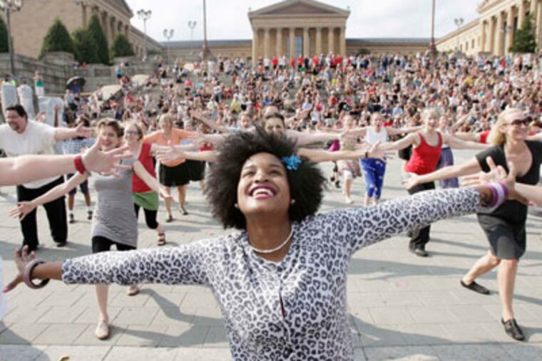 Large speakers situated around the base of the Philadelphia Museum of Art's famous Rocky steps came to life, and the sound of crashing ocean waves brought the dancers to movements inspired by underwater motion: slow gyrations, undulating arms, a held nose during an "underwater" dive.