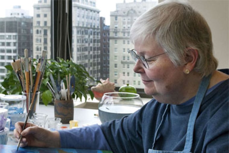 When she was in her 50s, Alter switched to painting - in acrylics, the medium she still favors. "Painting allowed me more freedom," she explains. "It was a more immediate way to say the things I wanted to say."