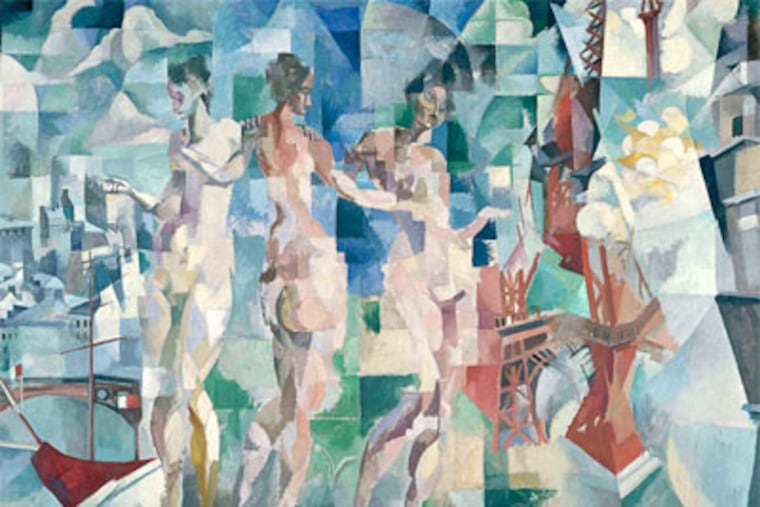 At first, any Stravinsky looked like a strange choice; it's hard to imagine him having patience for anything sweetly Arcadian. However, his 1914 Three Pieces for String Quartet was included to play off the cubist refraction of Arcadian visions upstairs, exemplified by Robert Delaunay's The City of Paris. The Stravinsky piece indeed has a fractured quality, especially in a performance that seemed bent on making a connection (not always successfully) with the ultra-terse music of Gyorgy Kurtag.