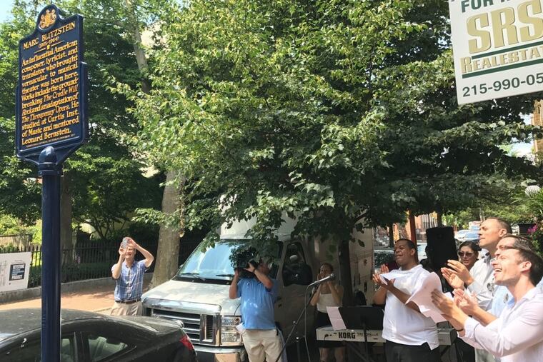 Blitzstein's family was "beyond thrilled" to see the marker go up, said great-niece Sarah Davis, who lives in Queen Village. "It's wonderful to see Marc honored in his hometown. There hasn't been a ton of that."