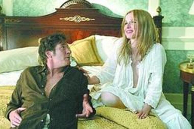 The movie turns darker as it mines Irving's relationship with his wife (Marcia Gay Harden, stuck in a glum role), and his on-again-off-again fling with his mistress (Julie Delpy). A comedy that took an admiring look at a hustler's pluck becomes a conspiracy yarn that's thickened, slowed and muddied by Watergate, Nixon and big-money control of America, in the person of Hughes.