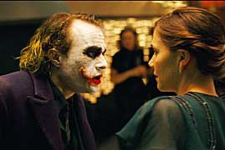 The Dark Knight contemplates good and evil as if they were forces illustrating Newton's Third Law of Motion. Batman's crime-busting incites the Joker's equal and opposite criminal reactions. The screenplay written by Nolan and his brother, Jonathan, is compulsively symmetrical that way. (It also results in a movie that is sadistic and unrelentingly grim, much more R than its PG-13 rating would suggest.)