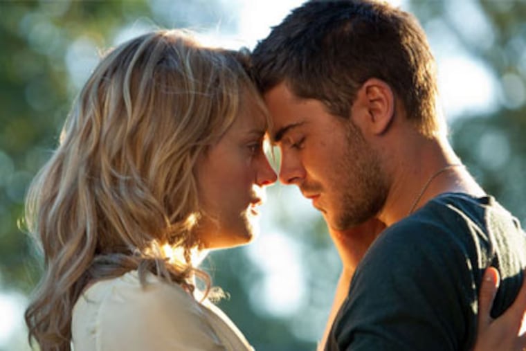 Efron, who wears an "All glory is fleeting" tattoo on his back and a soulful look on his face, gets to be more of a grown-up in The Lucky One than in most of what he's done before, although he still seems callow in the company of the toothy, sun-streaming-through-her-hair Schilling. The actress casts moony eyes in Efron's direction with conviction, and goes through the various stages of a Sparks heroine (hurt, happiness, hurt, happiness, let's rip off some clothes and get down) with similar attention to the task.