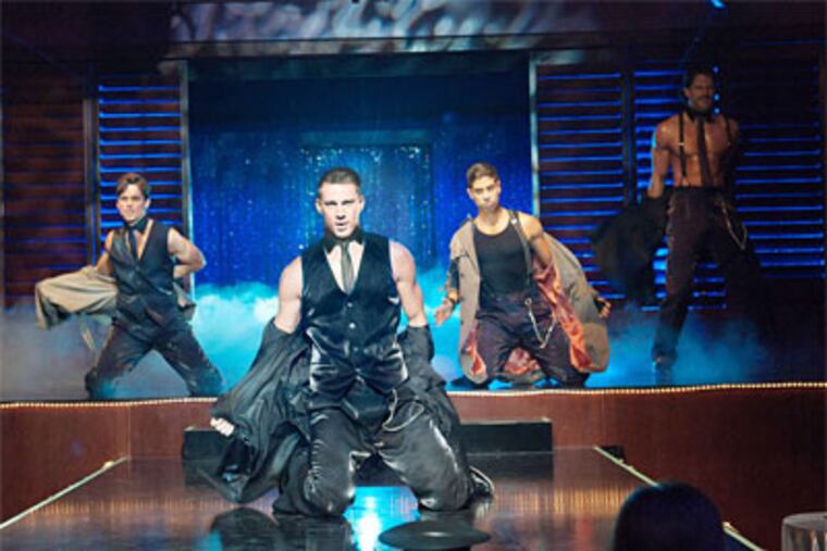 In Magic Mike, an odd and entertaining mix of backstage melodrama, indie verite, and Showgirls kitsch, the usual gender stereotypes are upturned. It's the rare movie (or TV cop show) these days that doesn't have a strip club scene, with women in G-strings snaking around poles, angling toward the guys waving $20 bills.