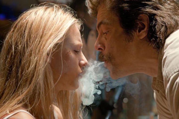 It's not a Stone polemic, by any means, but the director (on the cover of this month's High Times) does give us a utopian view of what a world of legalized pot might look like. Aaron Johnson plays Ben, a botanist who's developed a superpotent marijuana product that's sold like Starbucks in California, to grateful chemo patients and glaucoma sufferers. Ben is also a pacifist and Buddhist and philanthropist who donates profits to provide solar panels and $15 laptops to folks in Africa.