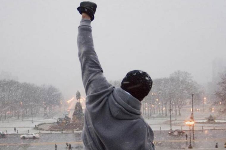 A few asked him politely to move so they could snap a photo next to the bronze figure, and he did so, ending up near a T-shirt vendor, who wanted to sell him a Rocky shirt.
