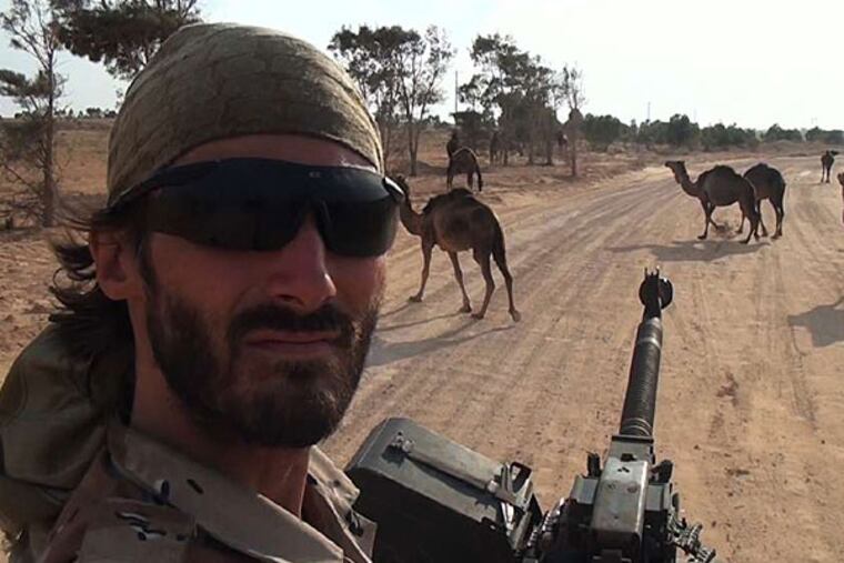 Point and Shoot begins with VanDyke showing off the knives he (still presumably) carries, and the body armor he wore in Libya, and in Afghanistan, where in 2010, he embedded himself with U.S. troops. Although he had a master's degree with a focus on Arab studies from Georgetown University, VanDyke, in his mid-20s, had never traveled to the Middle East, or anywhere, really. He was sheltered, and although he had a girlfriend (Lauren Fischer), VanDyke was accustomed to being alone, capturing his musings on his cellphone camera.