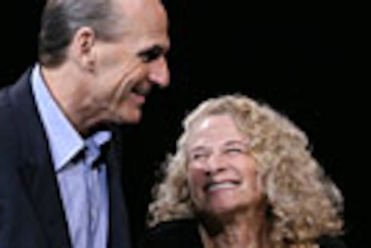 Just four songs into their show at the sold-out Wachovia Center on Thursday night, James Taylor got the age joke out of the way. He and Carole King, he said, "were trying to remember what was in the original set when we played the Troubadour in 1903."