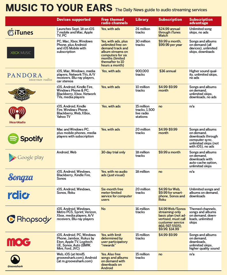 New services from Xbox Music and iTunes Radio join a crowded field of platforms that stream music. But how do they all compare?