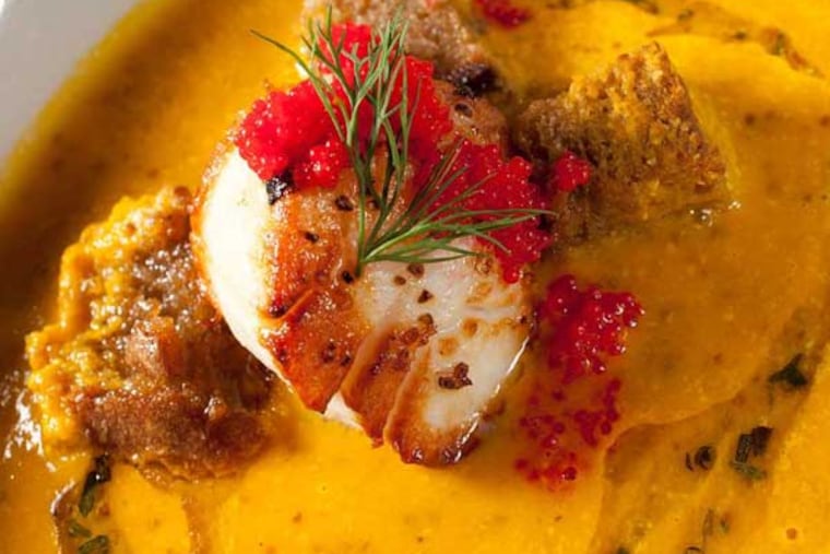 There is no other restaurant in Philly that's as devoted to the pleasures of house-smoked fish and rich sauces scented with anise and mustard. The seared scallop appetizer comes over an actual mustard soup, in which house-baked pumpernickel croutons bob in broth that's vivid orange with pureed carrot and mustard grains, then streaked green with tarragon oil. An even creamier mustard broth is the backdrop for a whole brook trout, its bones replaced with buttery Jerusalem artichoke stuffing, then topped with the peppery crunch of wilted mustard greens.