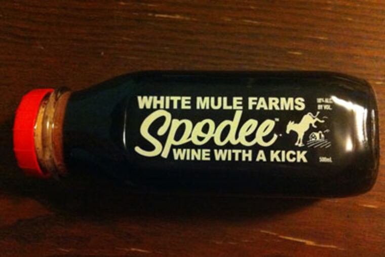 That's the formula for a "Spodee sody," which tastes like a chocolate Coke - though the Spodee's 18-percent alcoholic content delivered a kick. Hence, the bottle's name of White Mule Farms.