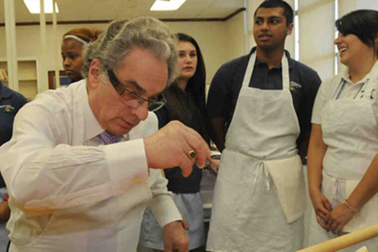 "I smell garlic! Ah! Pizza!" he said, before quickly turning to Pedro Ortiz, 18, a recent West Catholic graduate, who was chopping tomatoes. The chef couldn't help but show him a faster way.