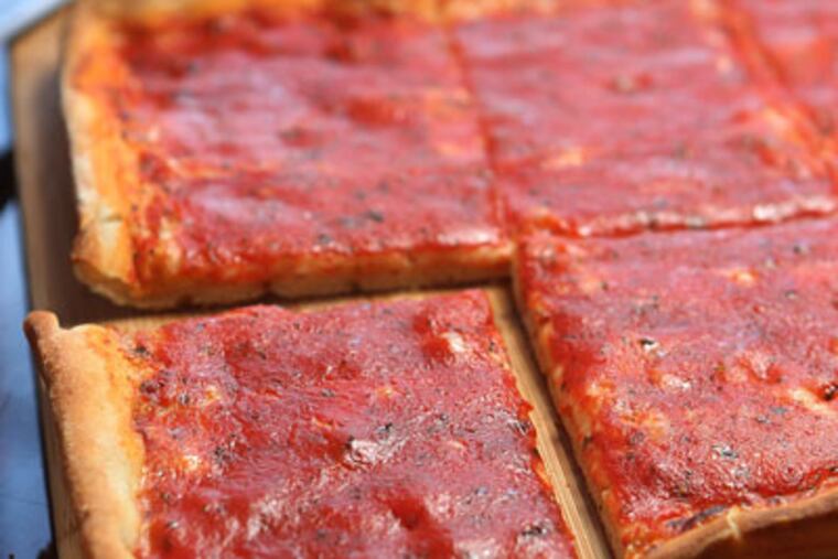There's a reason that there are six Santucci's in the Northeast: The crust is square, deep, and crispy, the tomato sauce is sharp. But they are known for causing pizza mayhem by putting a layer of melted mozzarella beneath the sauce, not the other, expected, way around.