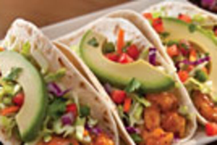 Company line: Three flour tortillas with grilled shrimp in a spicy chile-lime sauce topped with fresh cilantro-lime slaw, house-made pico de gallo and sliced avocados.