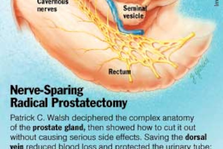 The search for the erectile nerves took four more years. Most urologists believed the nerves ran through the prostate, and thus couldn't be saved. But Walsh was unconvinced because a Philadelphia patient of his had reported a seeming miracle: he was having intercourse less than a year after surgery.
