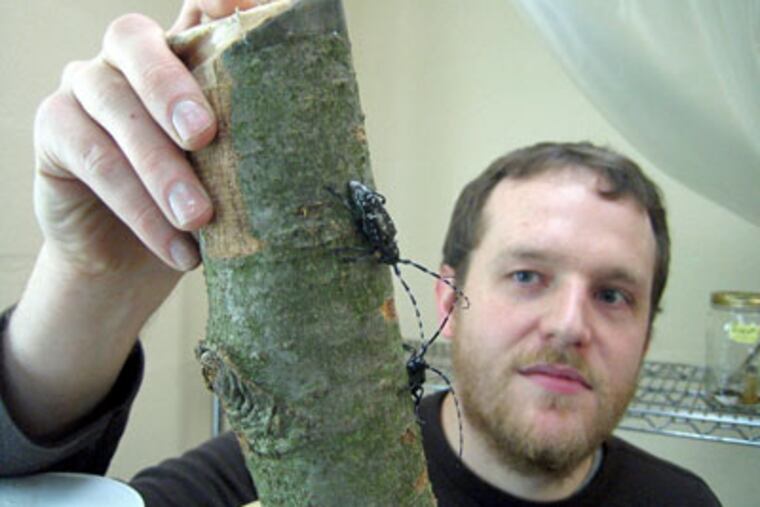 STATE COLLEGE, Pa. - Deftly using a pair of tweezers, Scott Geib pulls apart the insides of a yellowish, wormlike critter - the larva of a tree-devouring pest called the Asian long-horned beetle. Something in the insect's gut allows it to make short work of wood, but what?