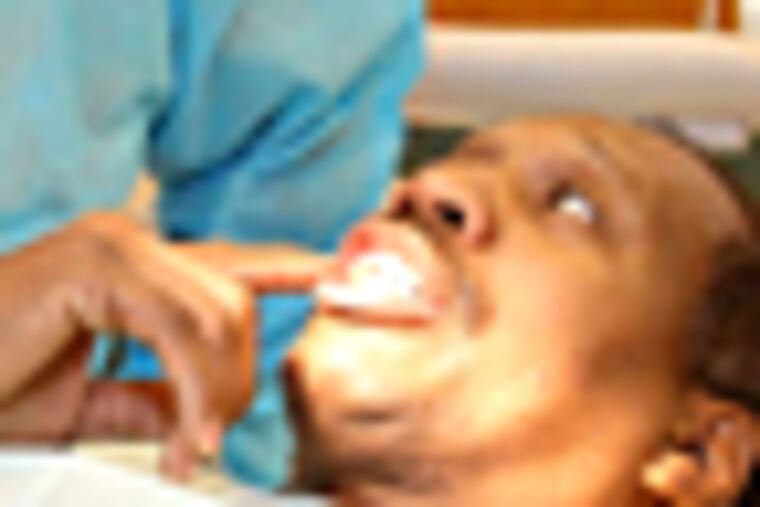 The burly North Philadelphia man, 33, had not seen a dentist in 15 years. Several teeth had recently fallen out, and he had suffered three abscesses but couldn't afford dental care even when he worked a clerical job at the Burlington Coat Factory.