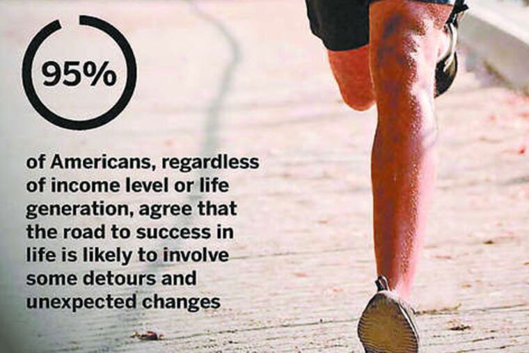 "There's no straight road to success anymore," explains Melanie Backs, manager of public affairs for American Express. "There's no one ladder to success. There are a lot of twists and turns that you take along the way. In fact, 95 percent of Americans believe the road to success involves detours and unexpected changes, and that held true across all income levels and all generations, from boomers to millennials."