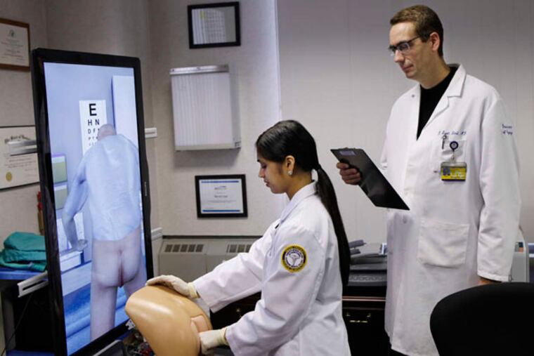 That is the home of Patrick, a simulated patient who is part image on a video screen, and . . . well, there is no elegant way to say this: part plastic butt.