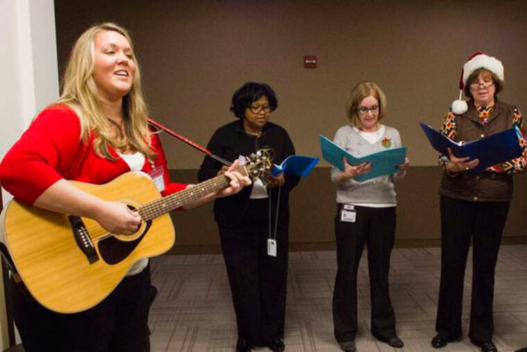 The results of the discussion were on display last week as Brooke Carroll, a guitar-strumming Temple music therapy doctoral student, led Mechanic and about a dozen Fox Chase employees in Christmas carols around the hospital.