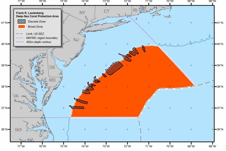 The newly protected area bans destructive equipment at depths greater than 1,450 feet and goes into effect Jan. 17, said the Mid-Atlantic Fisher Management Council, which manages fisheries in federal waters. Among the prohibited devices are trawls, dredges and traps. The prohibitions do not apply to recreational fishermen or the American lobster fishery.