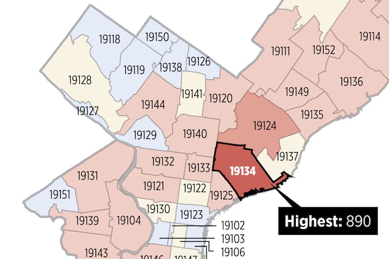 Neighborhoods across the city saw alarming spikes in fatal overdoses, according to data from the Medical Examiner's Office that show that while the epidemic may be less visible in places like South and West Philadelphia, scores of people there are dying.