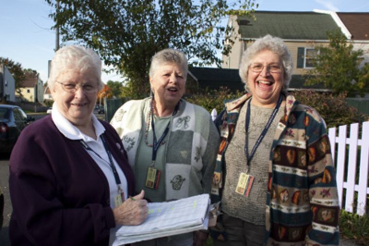 Baker, who formerly drove a school bus and worked as a nurse at Doylestown Hospital, was behind the wheel. O'Toole was next to her, using navigating skills she developed when she worked for Greyhound. Preston, the youngest, did most of the walking and hanging of the door notices.