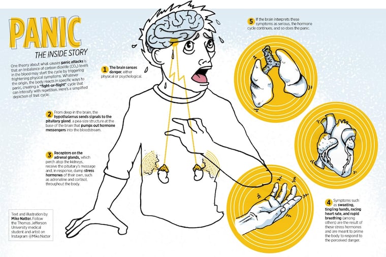 The theory behind the treatment is that improper breathing - too fast or too deep - triggers physical symptoms that spiral into full-blown panic attacks when anxious people worry that they're having a heart attack or some other catastrophic problem. The fear causes even more hyperventilation, leading to a vicious loop of physical symptoms and anxiety.